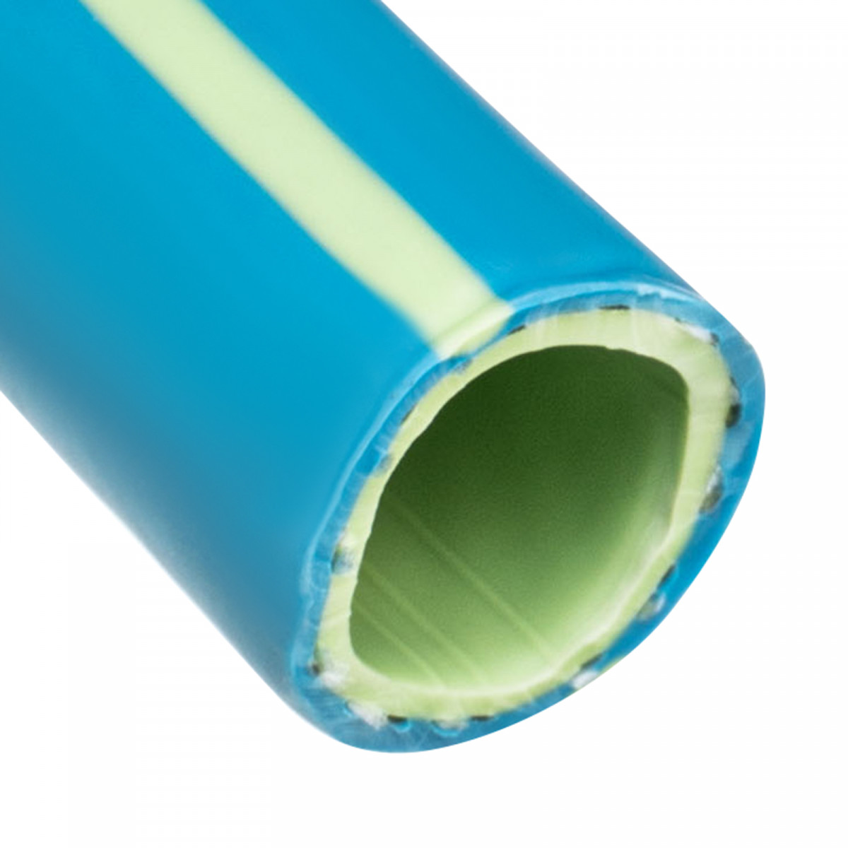 - Высокие эксплуатационные характеристики — толщина стенок составляет 2,5 мм, поэтому шланг выдерживает разрывные нагрузки до 6 бар.