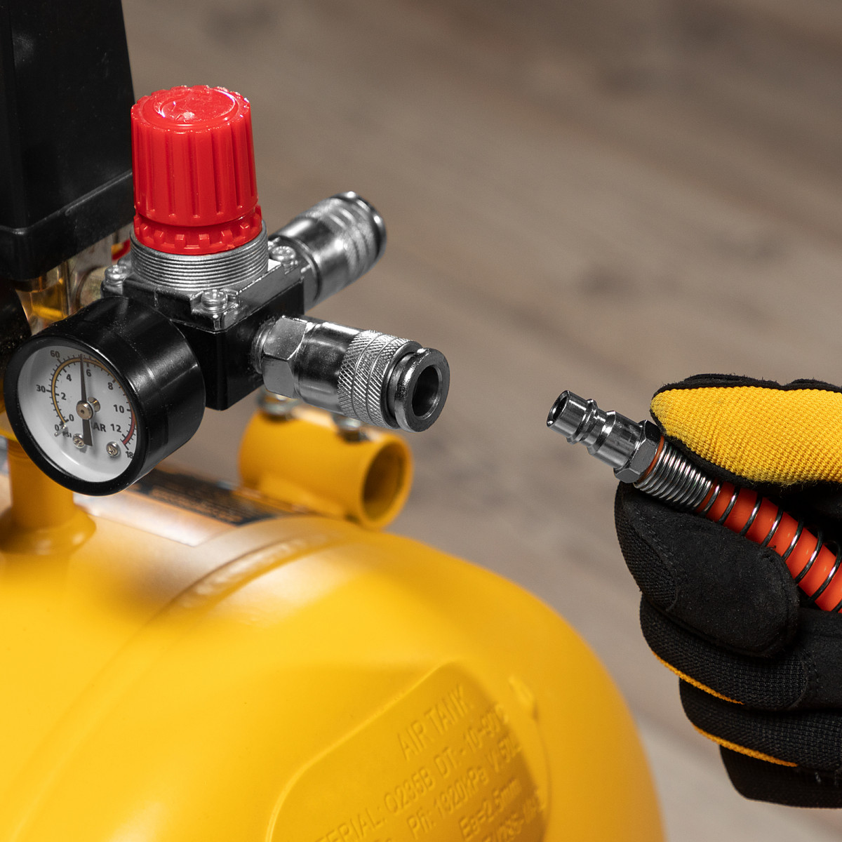 - Комфортная работа — быстросъемные соединения Рапид позволяют легко подключать рукав к компрессору и экономят время при смене пневмоинструментов.