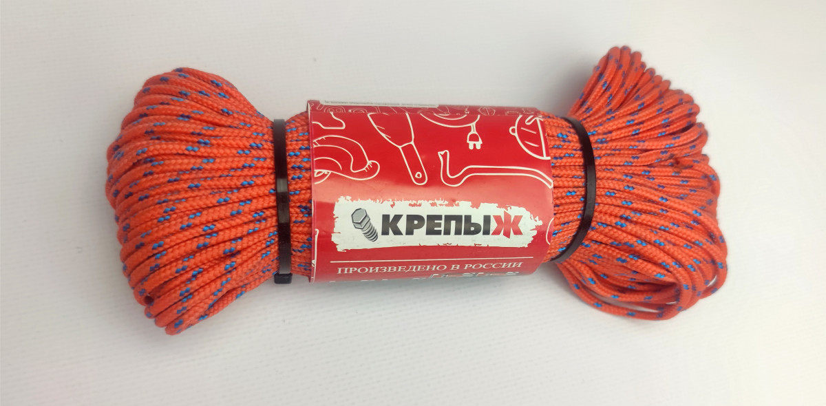 Шнур полипропиленовый плетеный 3 мм 16 пр. 50 м КРЕПЫЖ