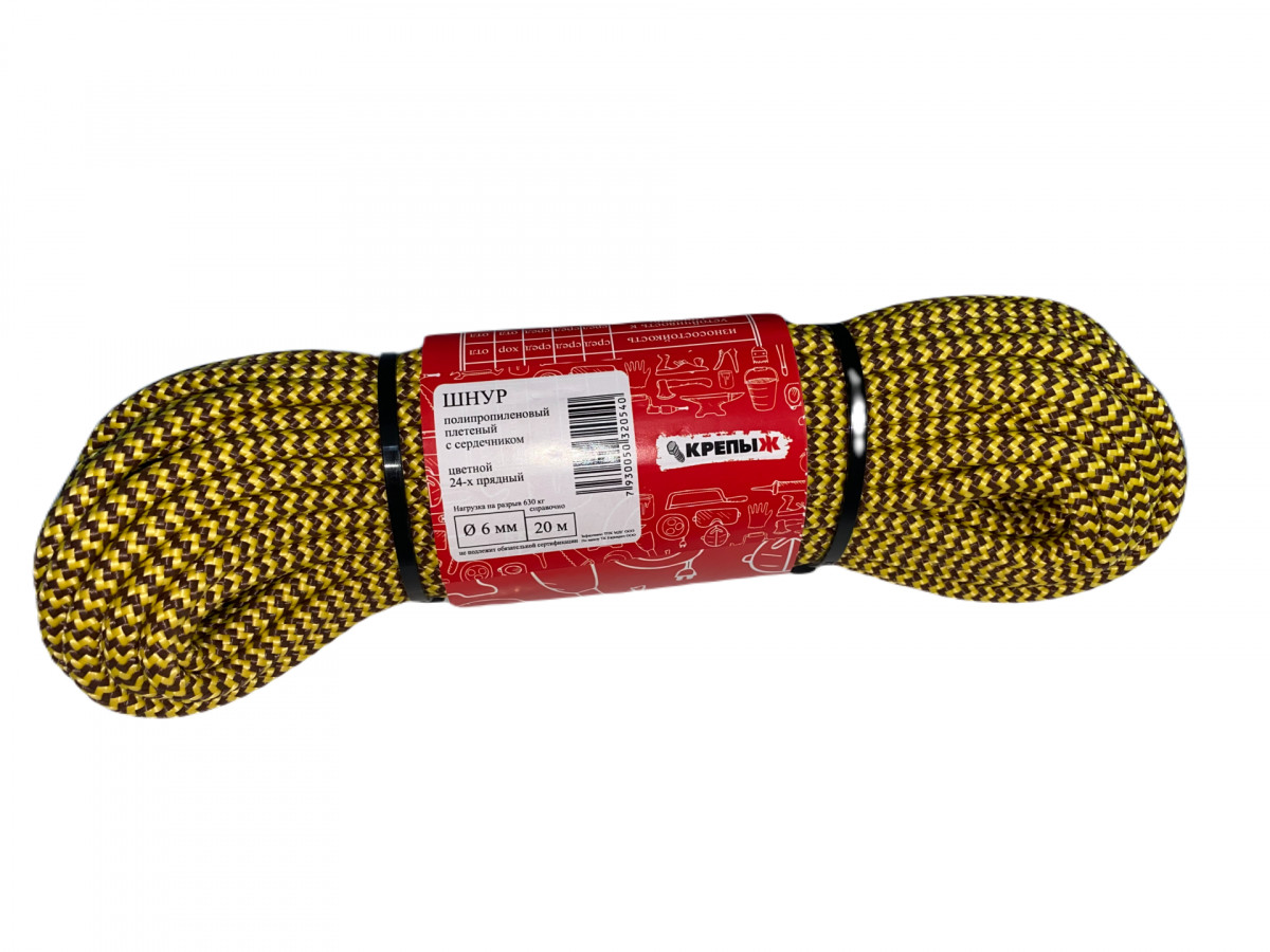 Шнур полипропиленовый плетеный 6 мм. 24 пр. 20 м КРЕПЫЖ