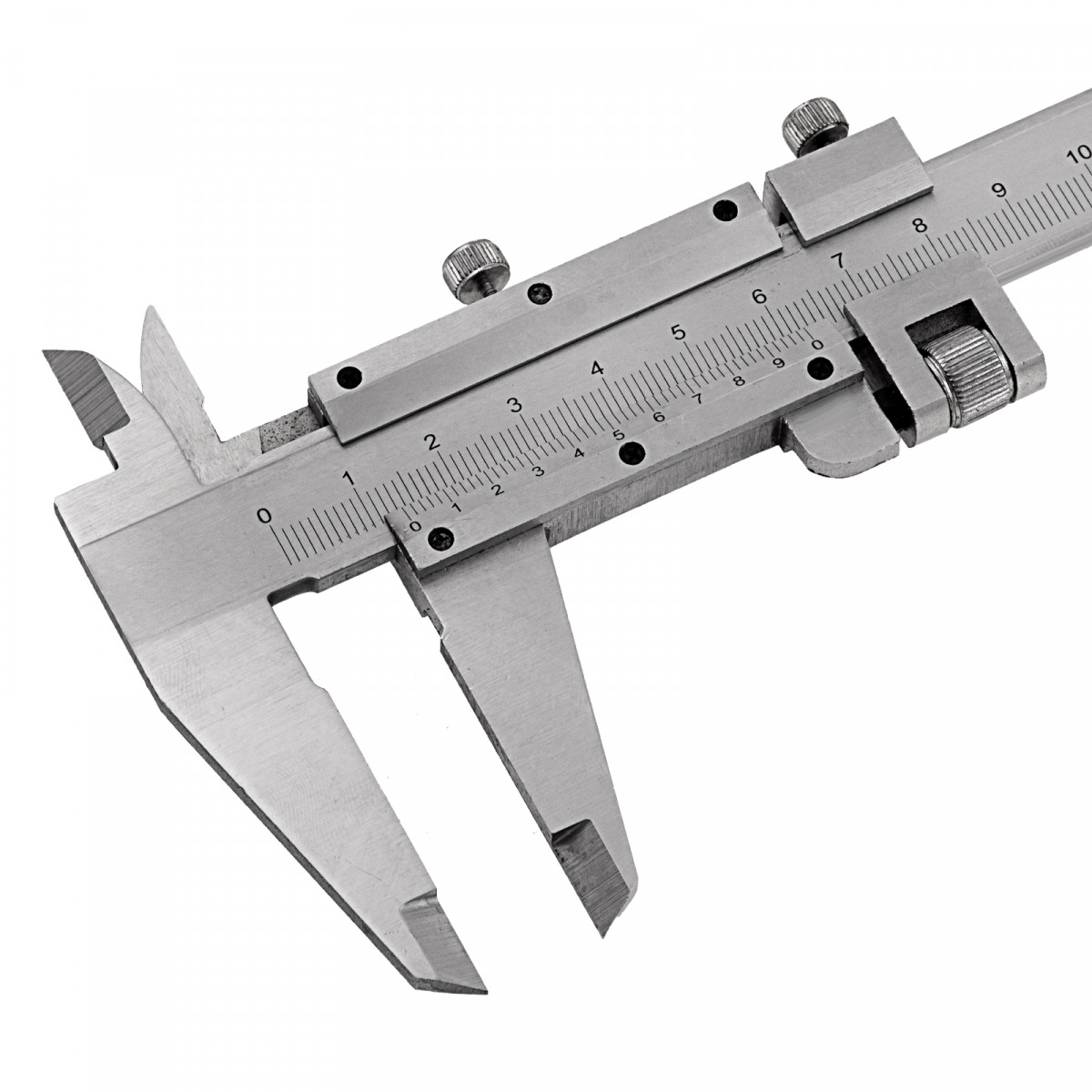 Металлический штангенциркуль с глубиномером Matrix 316335, 250 мм, со значением отсчета по нониусу 0,02 мм, используется для быстрого определения размеров внутри и снаружи деталей, а также глубин отверстий и канавок — для этого предусмотрен глубиномер. Погрешность составляет ±0,02 мм при измерении размеров до 100 мм, и ±0,03 мм — свыше 100 мм. Измерительный инструмент используется в токарном, слесарном деле, будет полезен на производственном предприятии, а также дома или в гараже.
