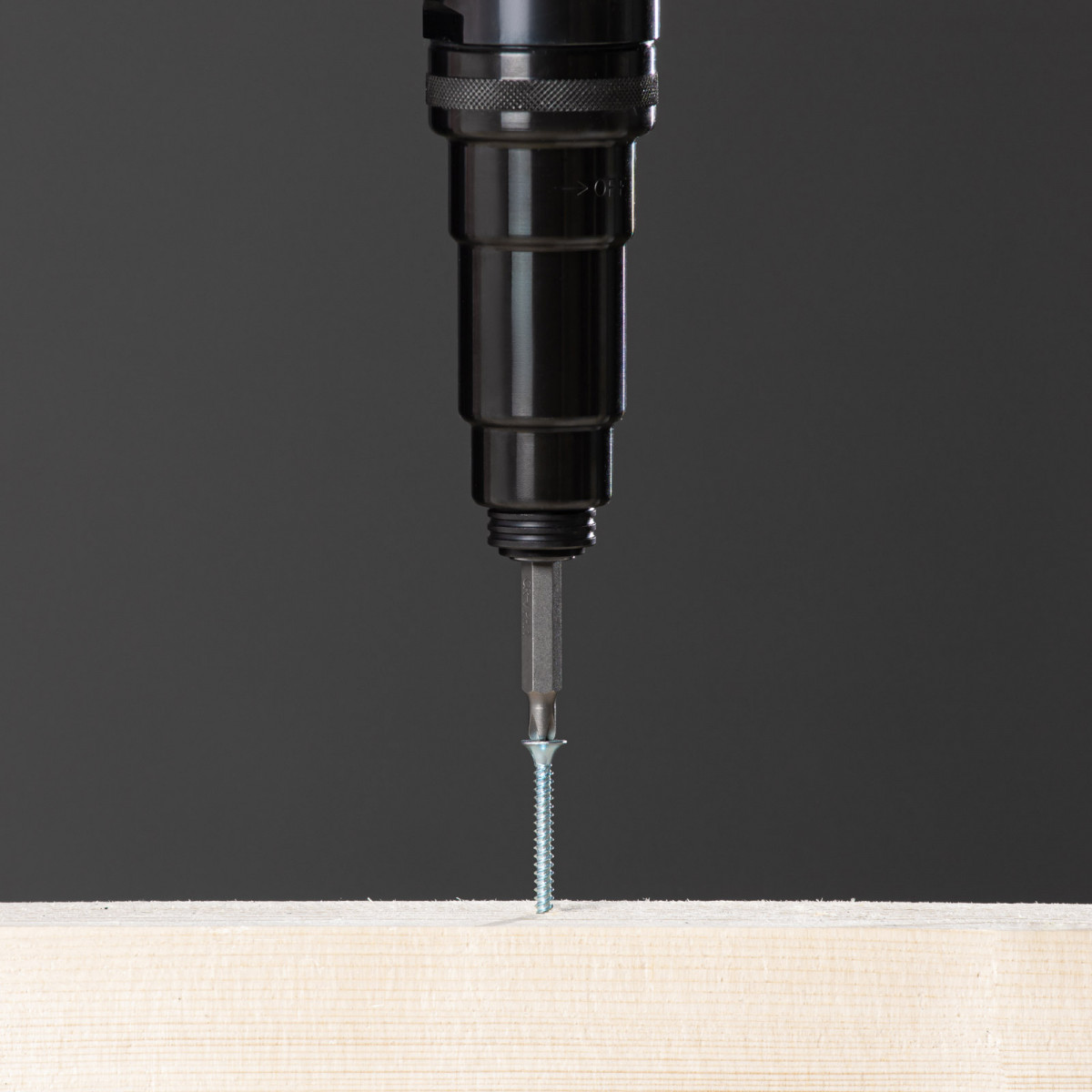 • Быстросъемное соединение — шуруповерт легко подключается к компрессору, что экономит время мастера.