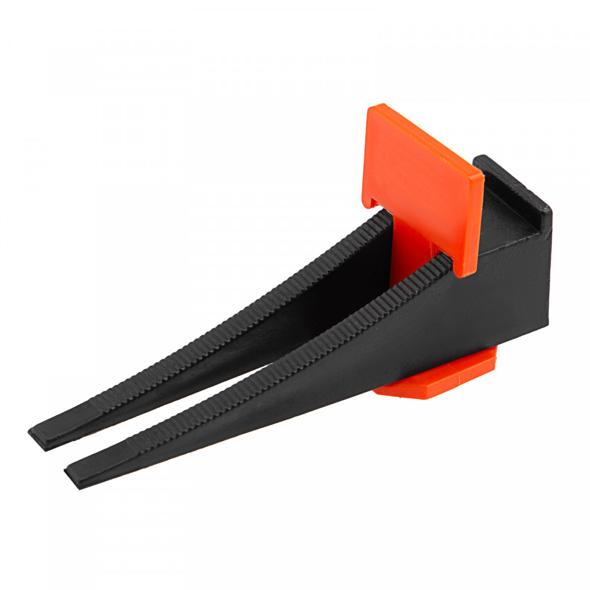 - Надежная фиксация — благодаря ребристой поверхности клинья надежно фиксируются с зажимами для плитки.