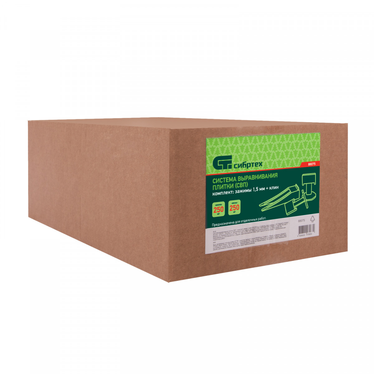 Система выравнивания плитки (СВП) Сибртех 88075 включает в комплект все необходимое: зажимы и клинья (250/250 шт.) для керамической и керамогранитной плитки толщиной 6-12 мм. Изделия предотвращают смещение плитки и гарантируют получение идеально ровных, аккуратных швов. Зажимы для плитки (СВП) предназначены для формирования швов 1,5-1,7 мм.