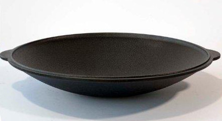 Сковорода-садж-имеет округлую форму и выпуклое дно. Особенность этой посуды в двойном назначении. Поставив ее дном на огонь, уникальная конструкция, форма и многофункциональность позволяет готовить сразу много пищи - мясные блюда, рыба, зажаренные овощи. А если эту сковороду перевернуть "вверх ногами", то вы сможете приготовить даже хлебные изделия, такие как лаваш.