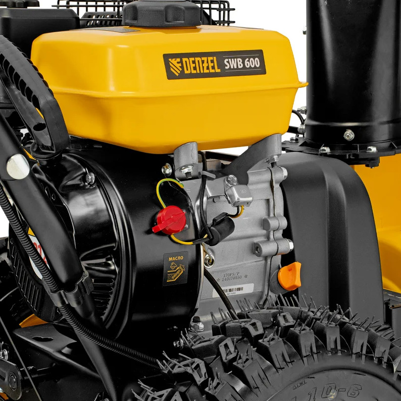 - Срезные болты в комплекте — c каждым двухступенчатым снегоуборщиком Denzel клиент получает 10 запасных срезных болтов на шнек, чтобы обеспечить бесперебойную работу техники