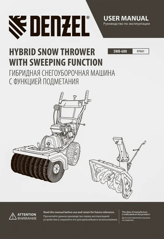 - 2 в 1 — снегоуборочная насадка используется для уборки сугробов и слежавшегося снега зимой, насадка-щетка может использоваться круглый год для уборки листвы и мусора, очистки тротуара, асфальта и плитки от свежевыпавшего снега до основания