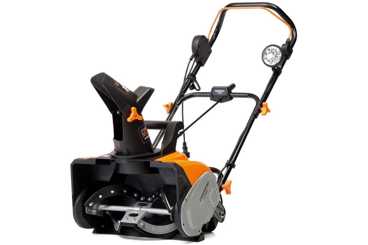 Электрический снегоуборщик DAEWOO DAST 2600E используется для очистки придомовых территорий. Оснащен двигателем, работающим от сети 220 В, защищенным от перегрева, не требующим технического обслуживания. Шнек не только загребает снег, но и помогает перемещать снегоуборщик. Дальность и направление выброса снега могут изменяться. В конструкции предусмотрена яркая LED фара, позволяющая продолжать работу после наступления темноты.