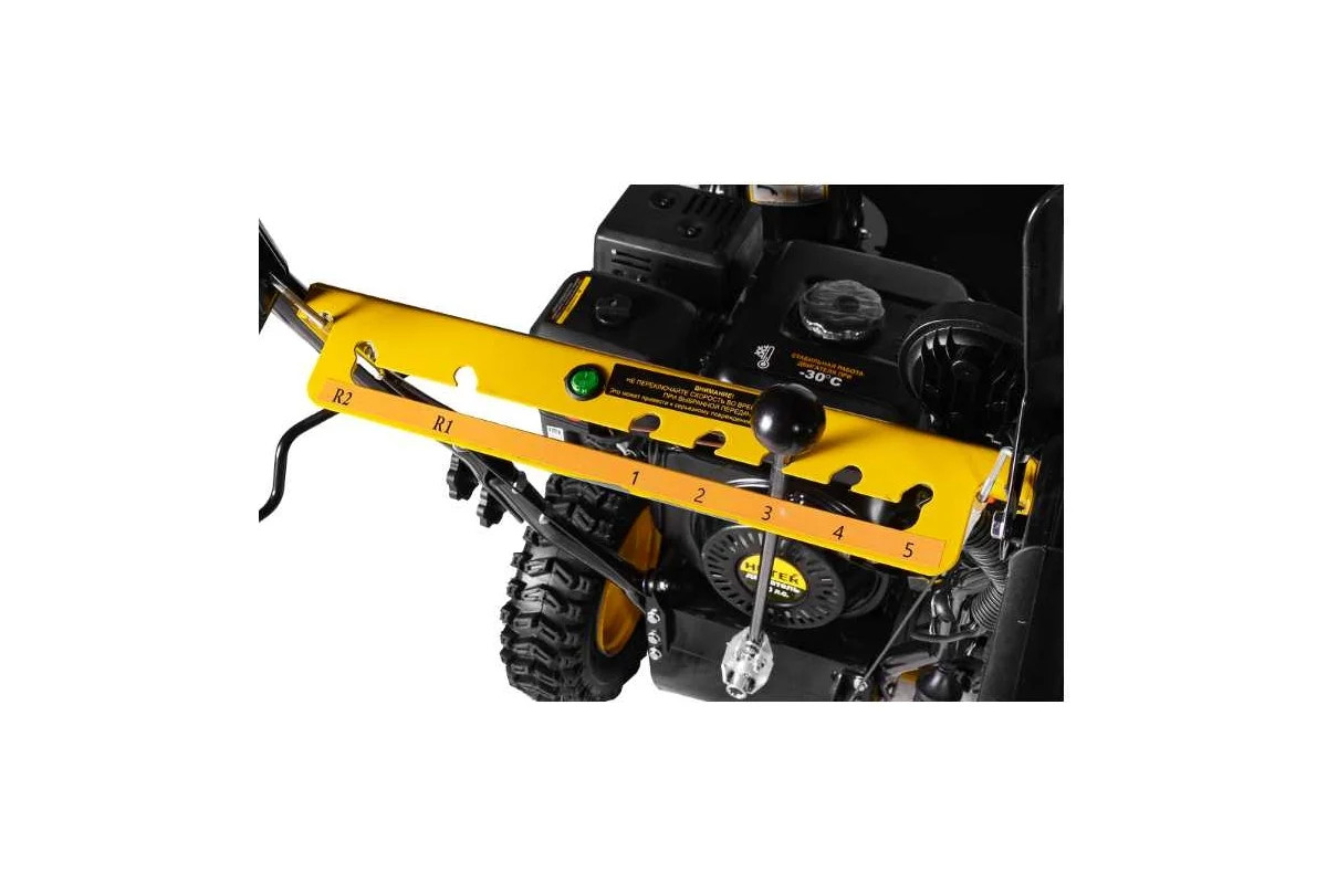 Снегоуборочная техника работает на базе бензинового двигателя с воздушным охлаждением, который можно завести с помощью электростартера от 220 В. Топливный бак вмещает 3,6 л бензина, этого достаточно для длительного использования устройства. Снегоуборщик оснащен ковшом 56х54 см со шнековой конструкцией, с помощью которой слой снега легко захватывается и отбрасывается в сторону на расстояние до 15 м. Направление и высоту выброса можно регулировать рукояткой даже во время хода машины. Особая форма металлического шнека с множеством режущих ножей позволяет агрегату легко справляться с уборкой заледеневших снежных пластов. Конструкция установлена на шасси с двумя надувными колесами, имеющими глубокий зимний протектор для защиты от скольжения. Модель имеет 7 скоростей: 5 вперед и 2 назад, что дает возможность выбора оптимального темпа уборки. Агрегат весит 74 кг, отличается компактностью, оснащен фарой для работы в темное время суток.