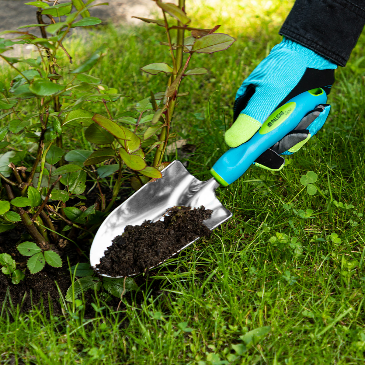 Широкий посадочный совок Palisad PREMIUM PLUS 62051 размером 90 х 320 мм, из нержавеющей стали, с двухкомпонентной рукояткой, предназначен для посадки и пересадки растений. Удобен для работы на больших грядках и клумбах, будет полезен садоводам.
