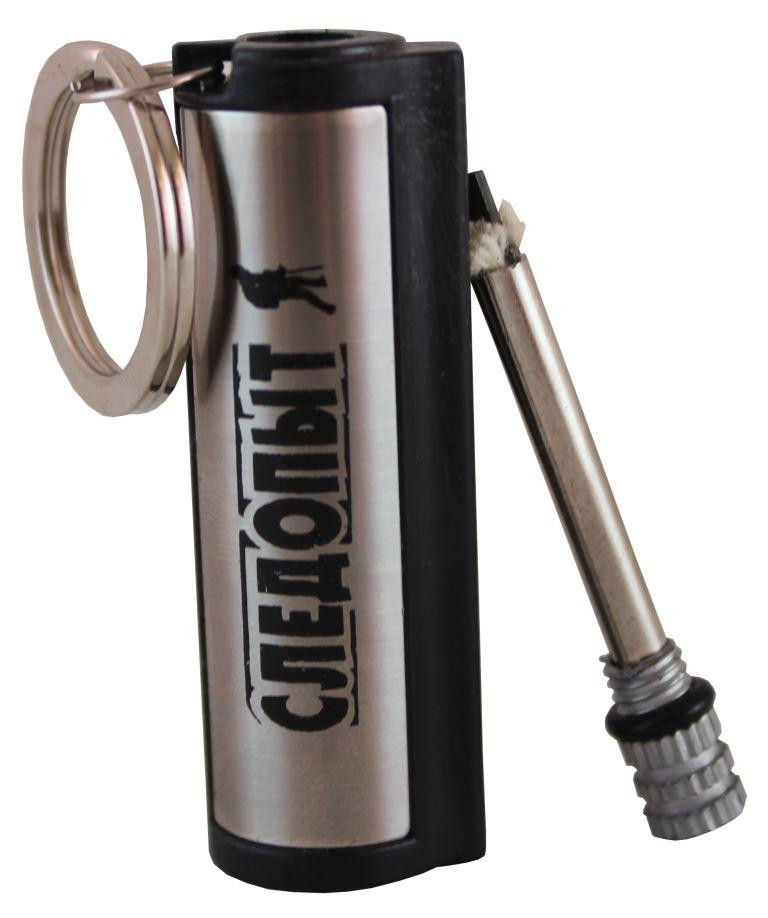 К серебристому флакону прилагается лишь одна "вечная спичка". Достаточно будет заправить флакон бензином, выкрутить "спичку" из корпуса и чиркнуть ею по расположенному на боку магниевому цилиндру, чтобы добыть огонь.