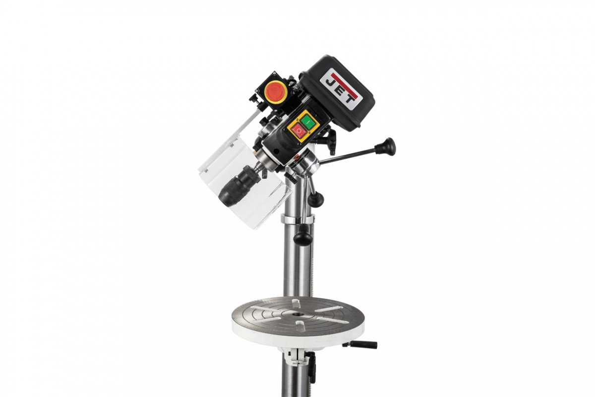 Сверлильный станок JET JDR-34 используется в бытовых целях. Мощный двигатель с выходной мощностью 350 Вт способен справиться даже с высокими нагрузками. Основное назначения станка – высверливание небольших аккуратных отверстий диаметром до 16 мм в древесине.
