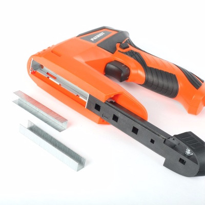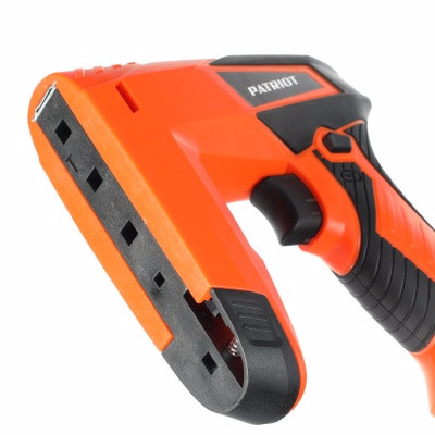 Электрический степлер PATRIOT EN 141 The one 100300100 применяется профессионалами и рядовыми пользователями для закрепления ткани, кожи, плёнки, для работы с панелями из пластика и дерева. Работает с двумя видами крепежа: скобами тип 53/А длиной 8-14 мм и Т-образными гвоздями (тип 48) длиной 15 мм. Надежный захват. Рукоятка с резиновыми накладками ExtraGrip обеспечивает крепкий хват. Готов к работе. В комплекте уже имеется 400 скоб и 100 гвоздей.