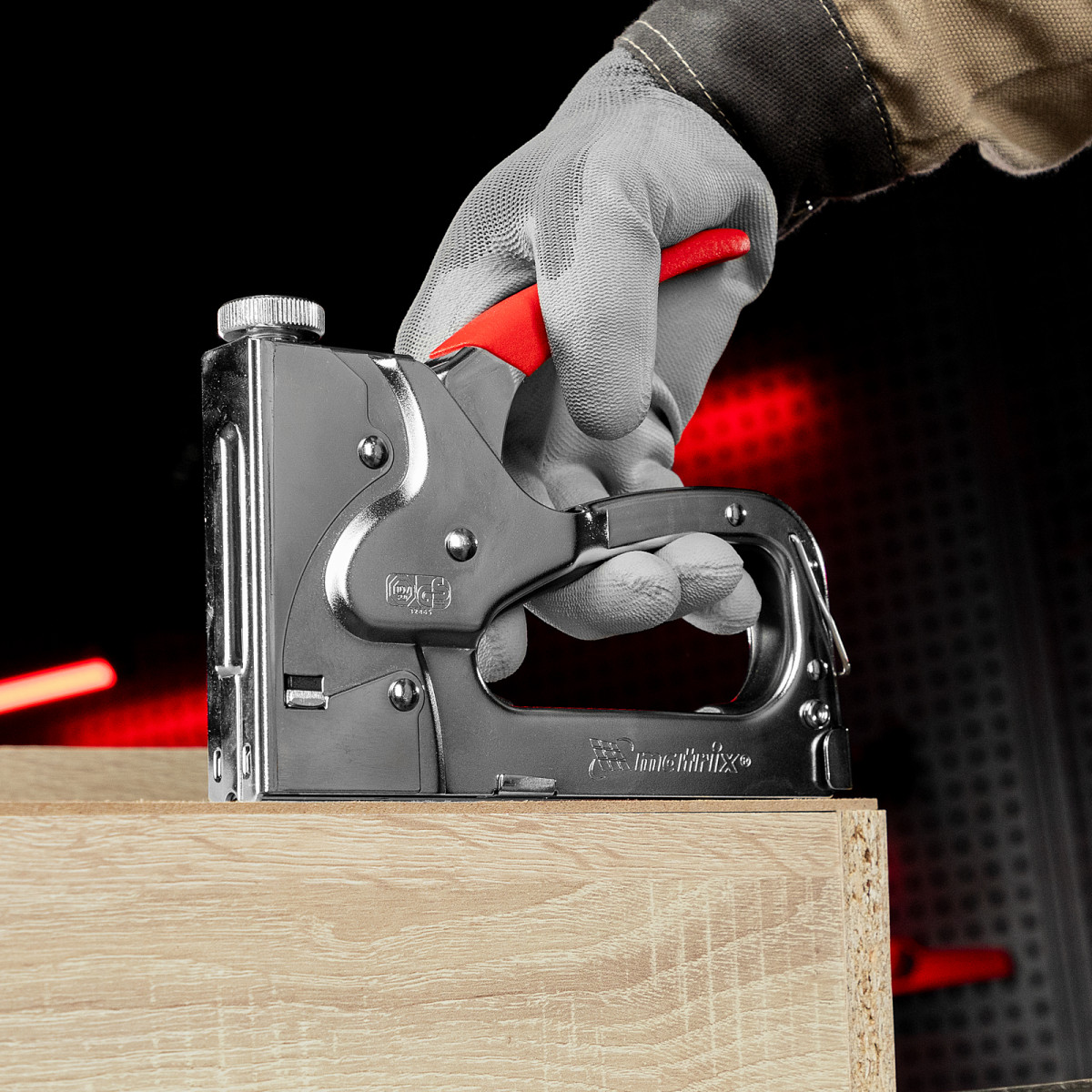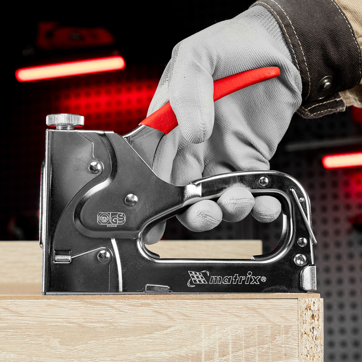 • Безопасное хранение и транспортировка — накидная скоба фиксирует рукоятку, предотвращая случайное срабатывание степлера.