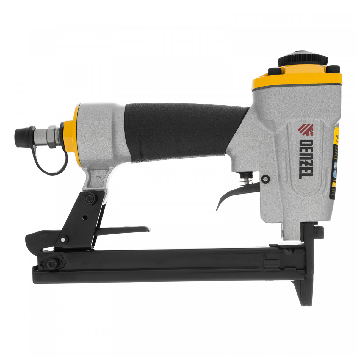 Пневматический степлер Denzel PS8016 57400 предназначен для крепления к основанию листовых материалов при помощи прямоугольных скоб 21GA размером 6-16 мм. Подходит для закрепления фанеры, оргалита, ДСП, обивочной ткани. Незаменим во время отделочных работ и производства мебели.