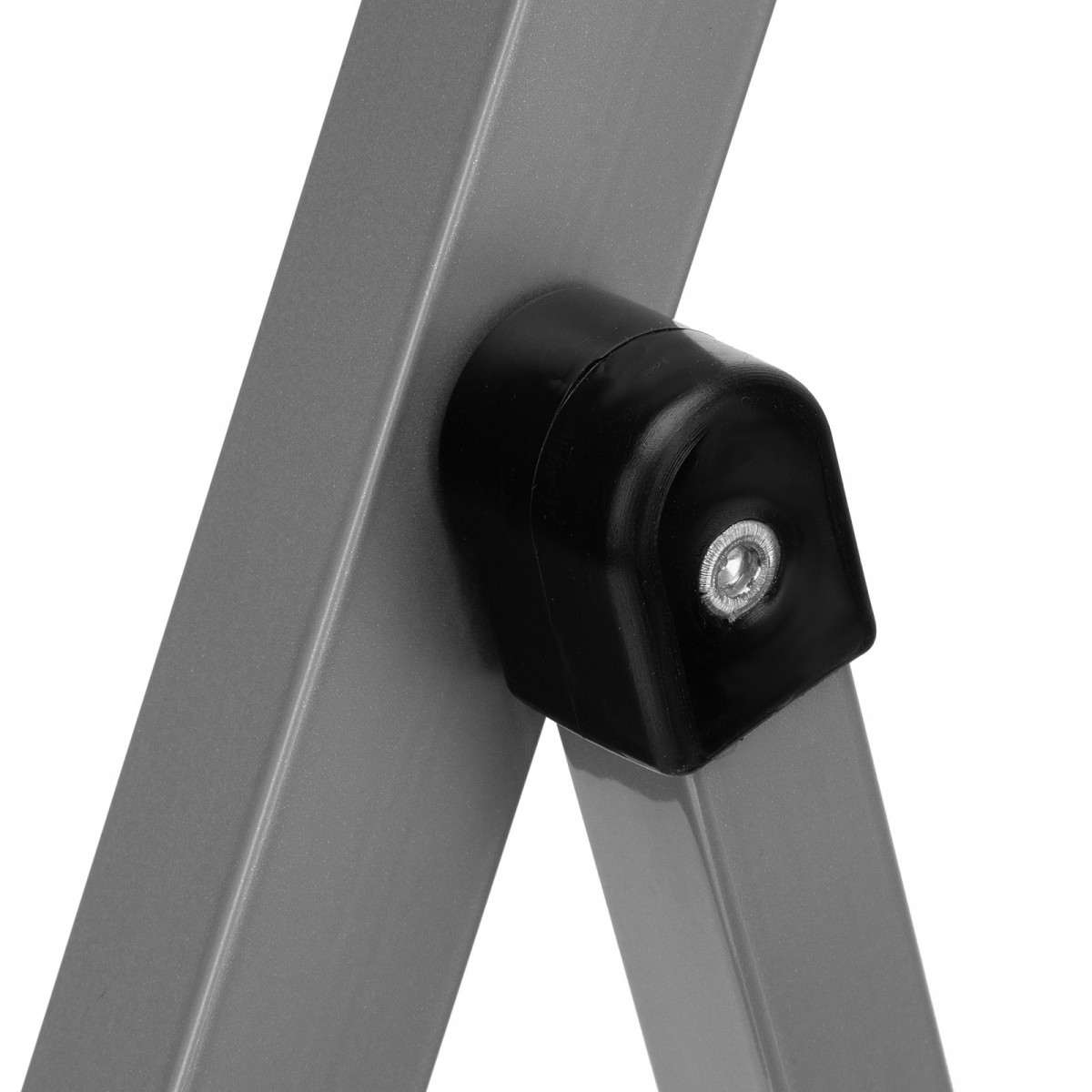 - Прочность — рама и ступени изготовлены из стали, поэтому стремянка выдерживает нагрузку 120 кг.