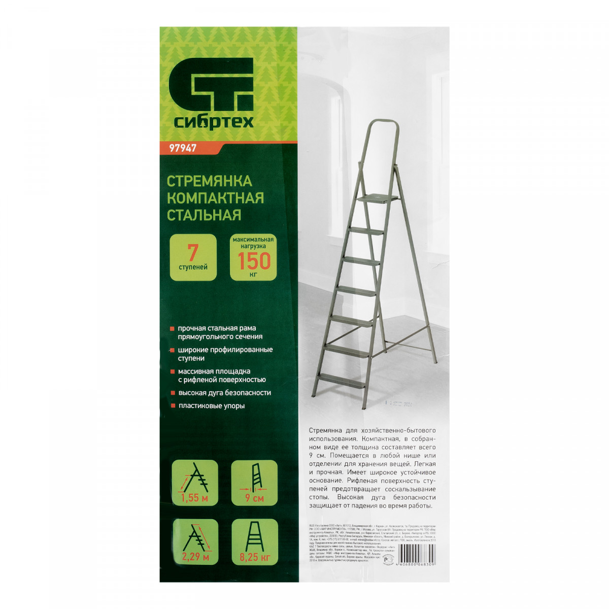Стремянка 7 ступеней, компактная, стальная Сибртех