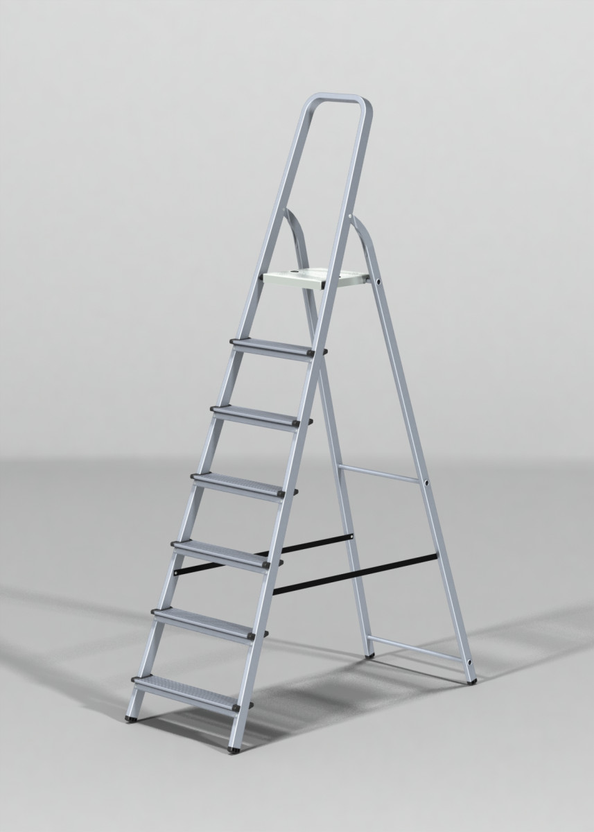 Стремянка Новая Высота 7 ступеней предназначена для интенсивной эксплуатации. Устойчива на любой поверхности. Профилированные ступени обеспечивают уверенный подъем работника на высоту. Страховочные ремни придают конструкции жесткость и не дают стремянке сложиться. При хранении лестница не занимает много места, а благодаря небольшому весу легко транспортируется.