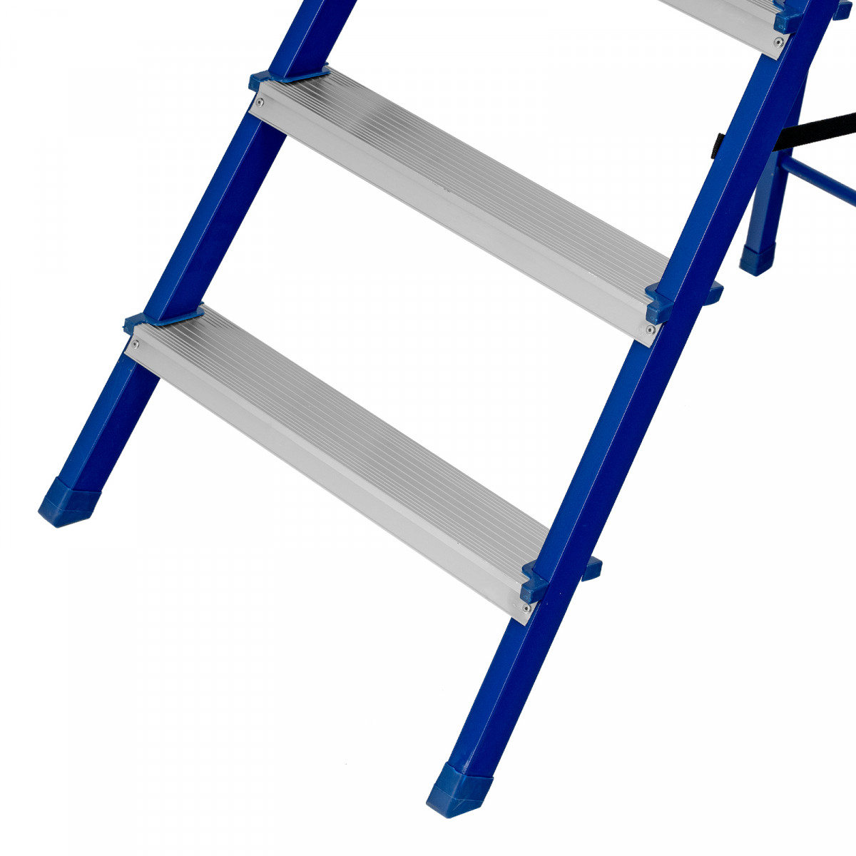 Стальная рама обеспечивает высокую надежность и прочность стремянки.