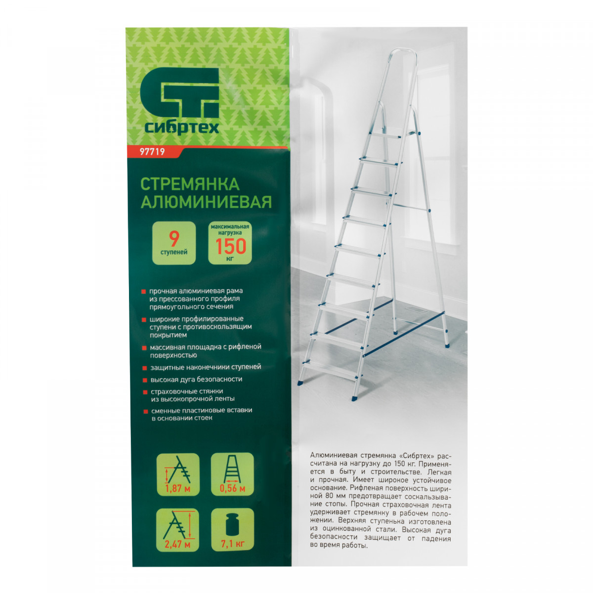 Стремянка, 9 ступеней, алюминиевая, Сибртех