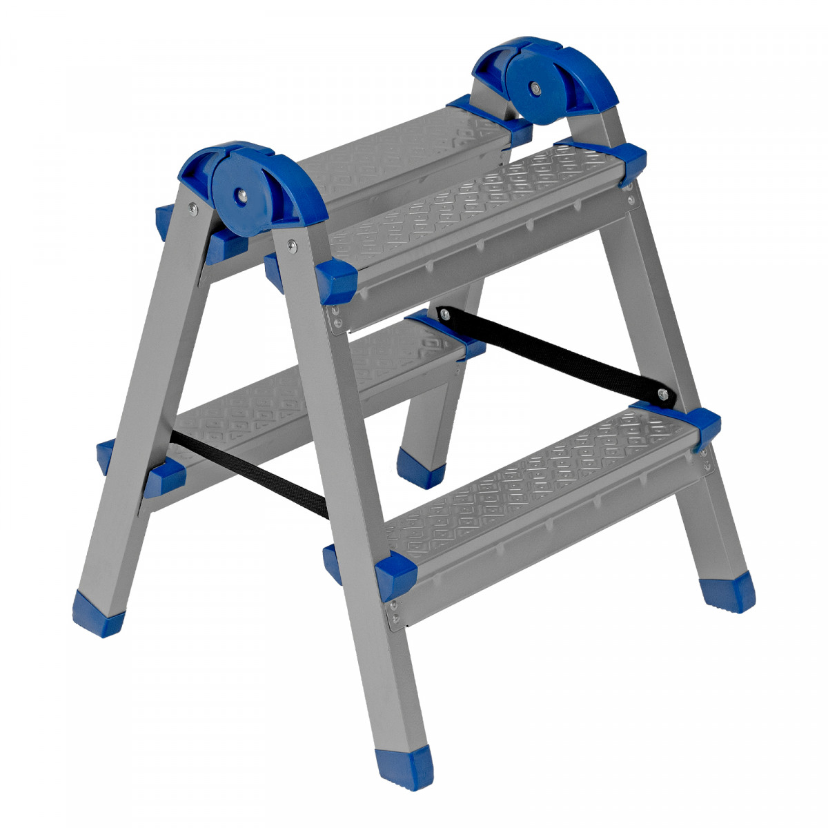 Стремянка двухсторонняя 2 ступени, сталь профиль, стальные ступени, Сибртех