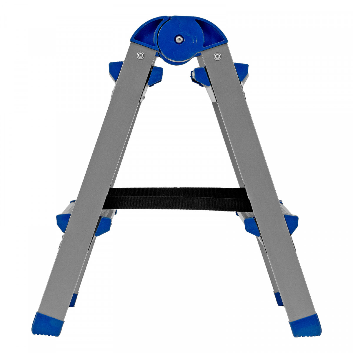 - Удобная транспортировка — стремянка весом 2,6 кг легко складывается, ее размеры в сложенном состоянии 500 х 410 х 160 мм.