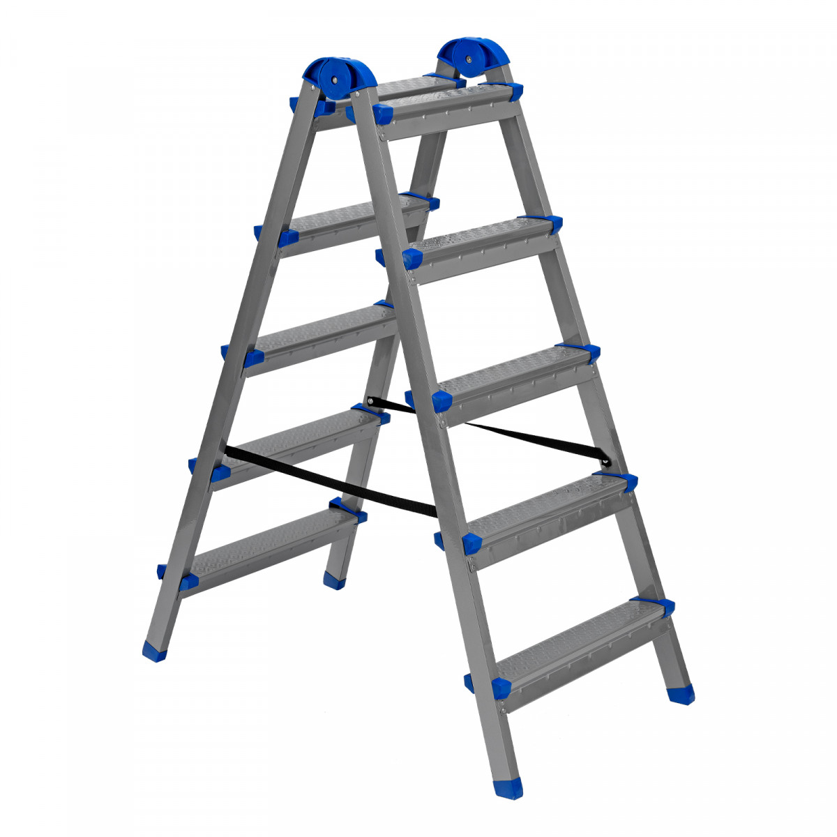 Стремянка двухсторонняя 5 ступеней, сталь профиль, стальные ступени, Сибртех