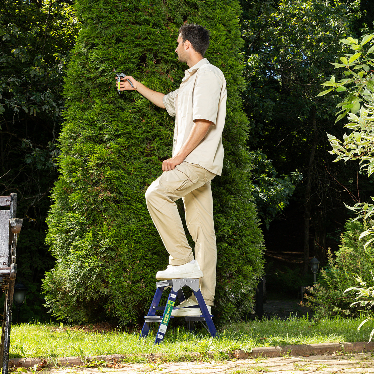 • Компактность — стремянка весом 2,2 кг имеет габариты в сложенном состоянии 437 х 420 х 160,5 мм, поэтому ее удобно хранить и перемещать.