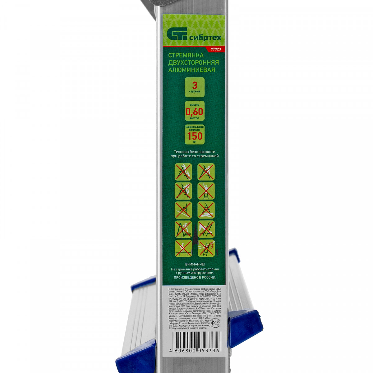 Стремянка двусторонняя 3 ступени, алюминиевая, Сибртех