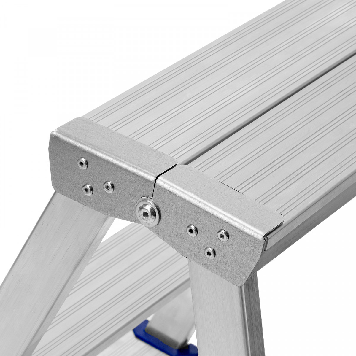 - Долговечность — стремянка выполнена из легкого, но прочного алюминия, устойчивого к коррозии.