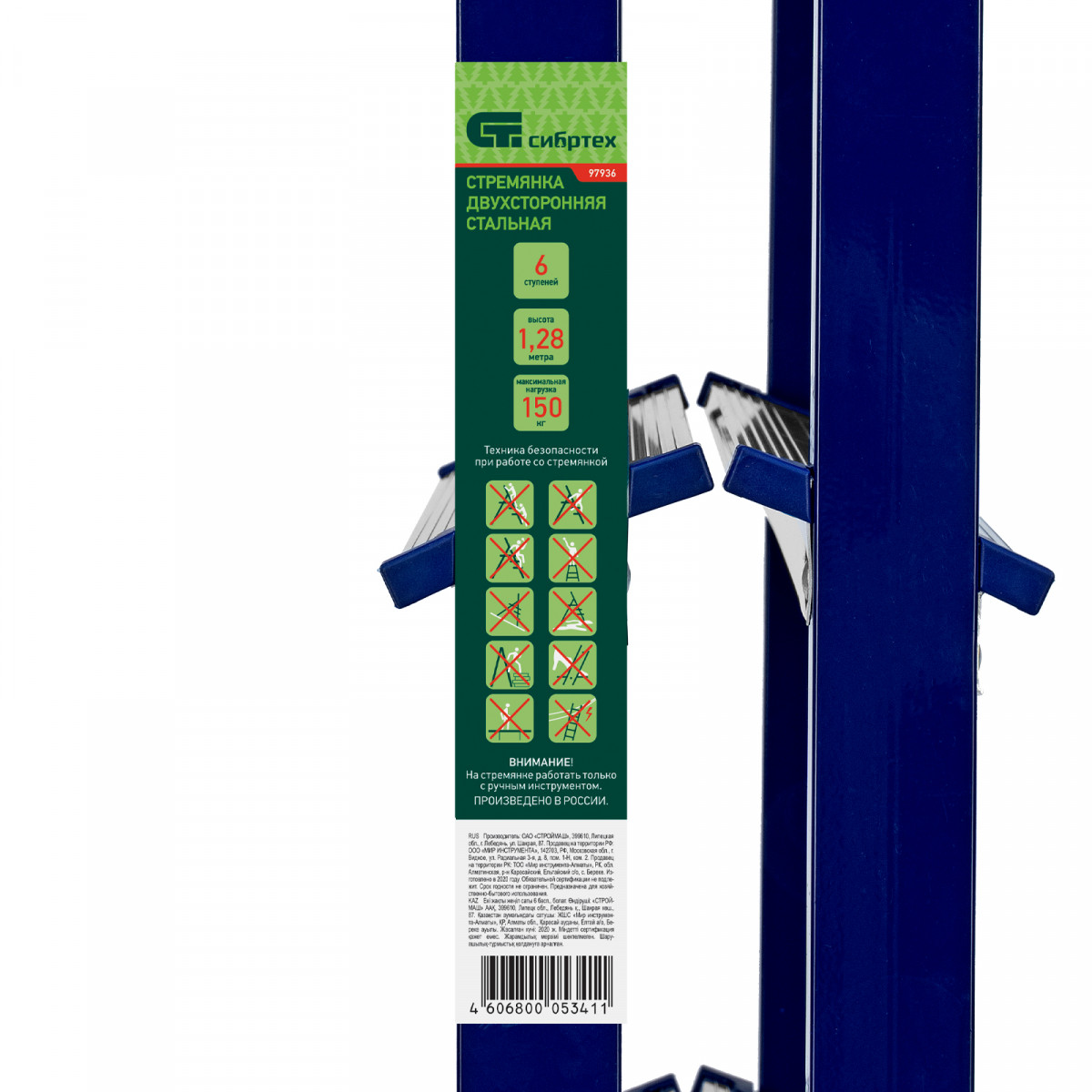 Стремянка двусторонняя 6 ступеней, стальная, Сибртех