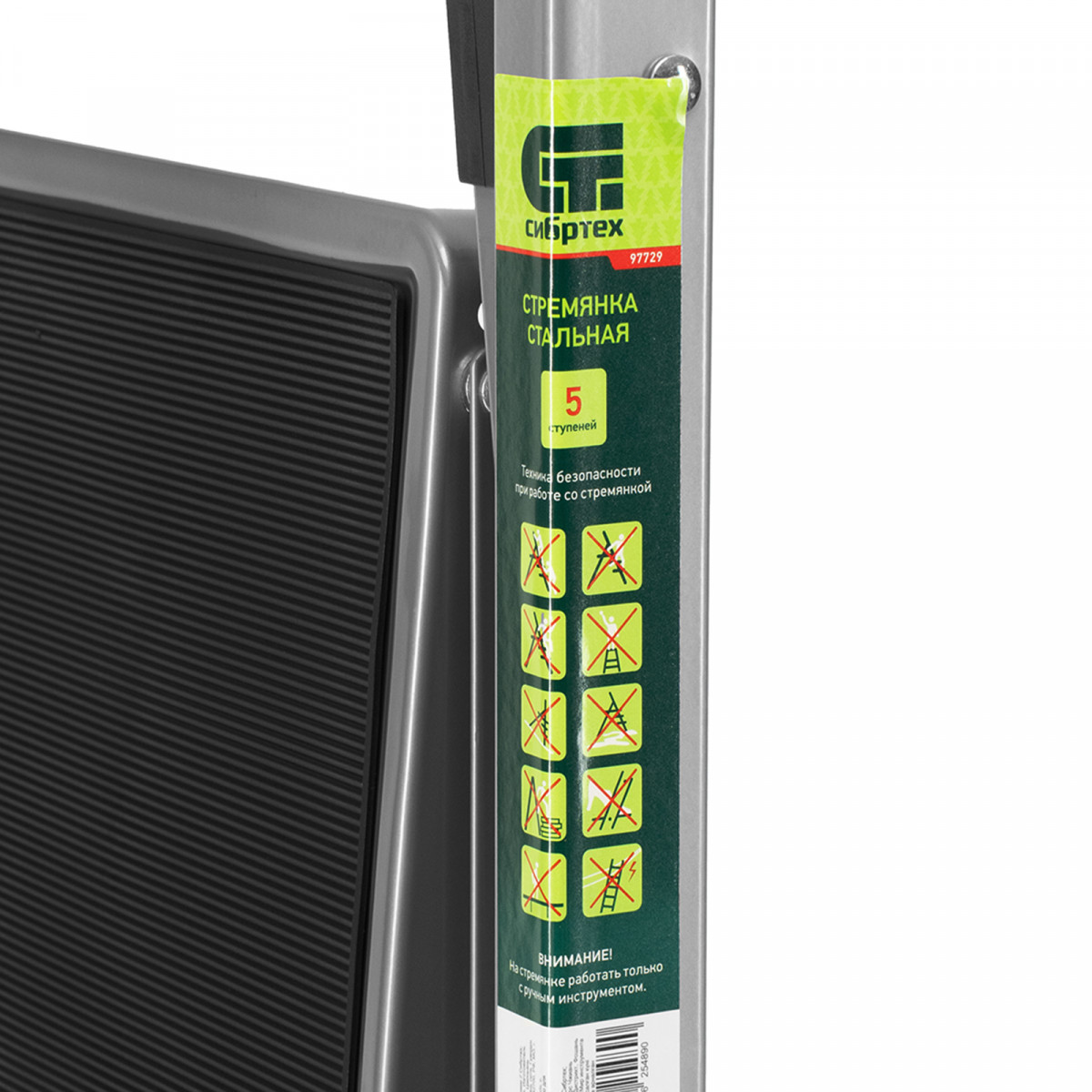 Стальная стремянка Сибртех 97729 с 5 широкими ступенями размером 20 x 30 см, с полимерным покрытием, позволяет выполнять различные работы на высоте, превышающей человеческий рост. С ее помощью можно достать нужный предмет с полки, покрасить стену, поменять лампочку, вытереть пыль на шкафу и т.д. Верхняя ступень находится на высоте 115,5 см от опорной поверхности, рабочая высота составляет 315,5 см (при среднем росте пользователя 170 см). Дуга безопасности и широкие ступени с нескользящим покрытием обеспечивают устойчивое положение пользователя. Стремянку следует размещать на ровной поверхности и использовать для работы только с ручным инструментом.