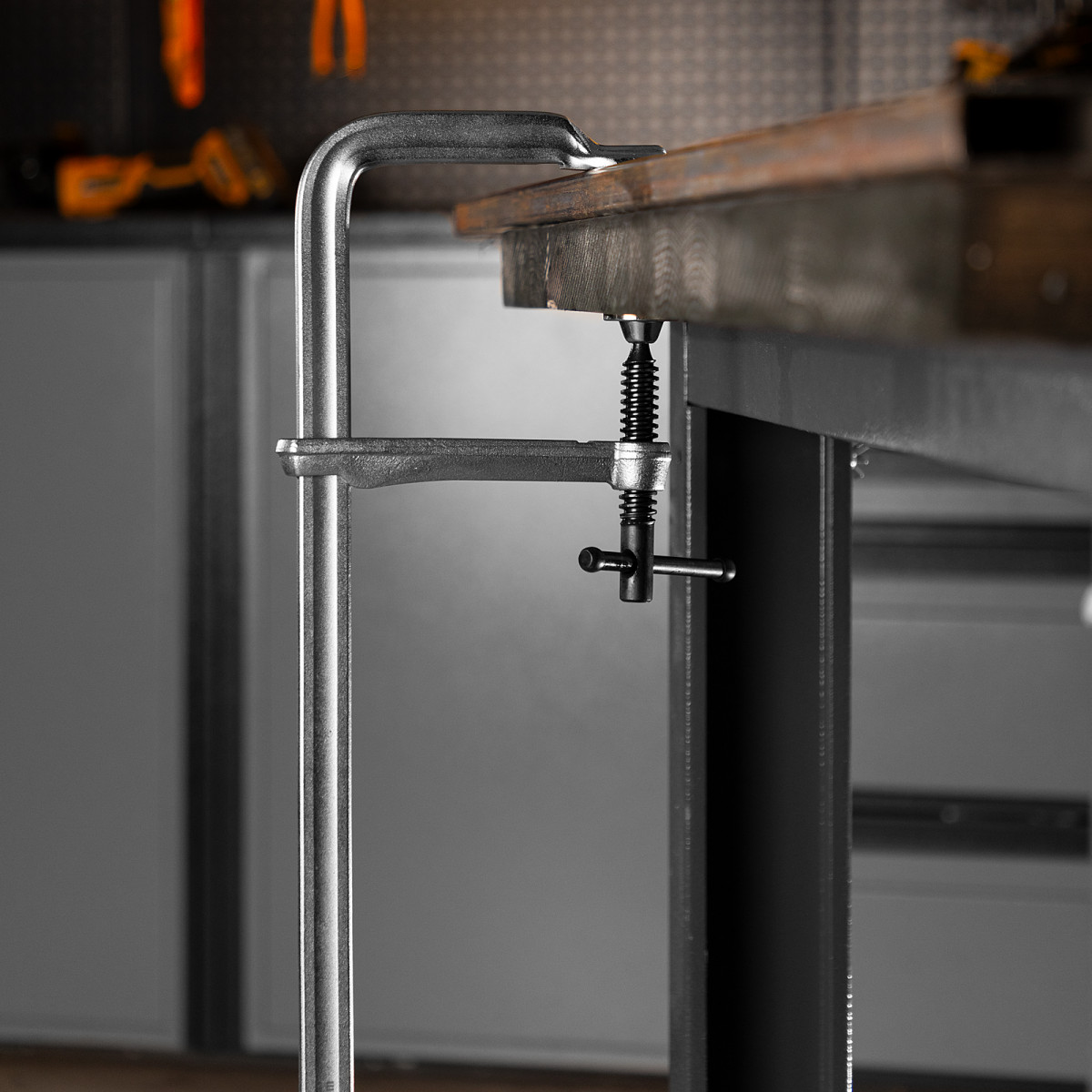 Кованый корпус из конструкционной стали обеспечивает прочность и устойчивость струбцины Denzel 20471.