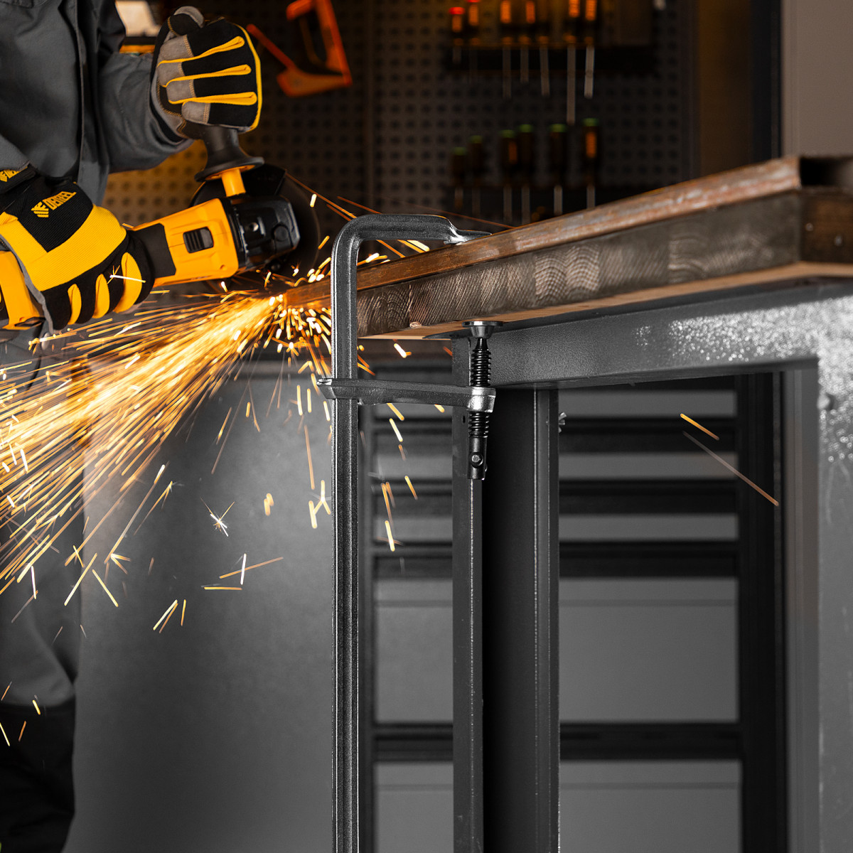 Кованый корпус из стали 45 обеспечивает прочность струбцины до твердости 38-42 HRC.