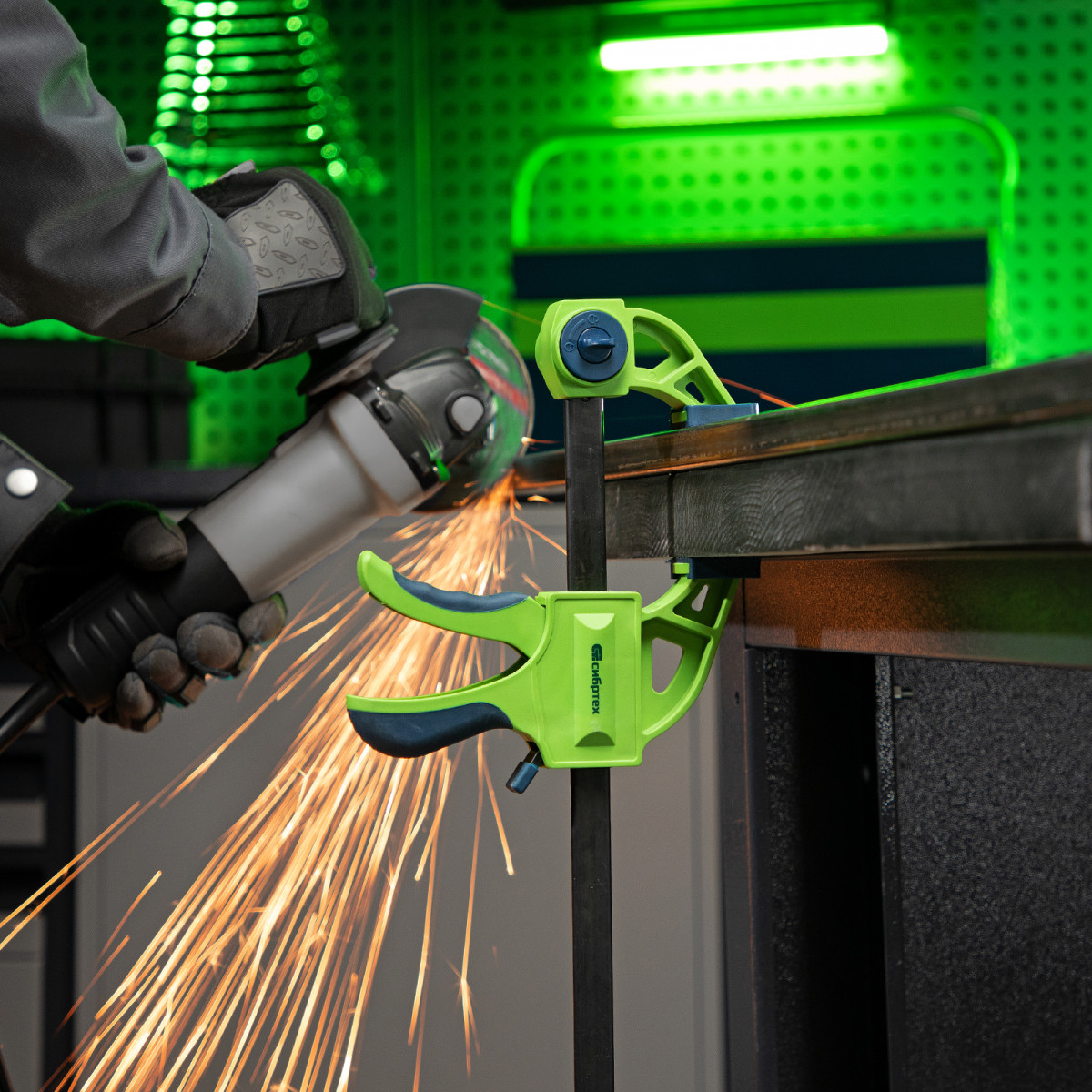 • Дополнительные возможности — опорную губку можно переставить на другой конец штанги, превратив струбцину в распорный инструмент.