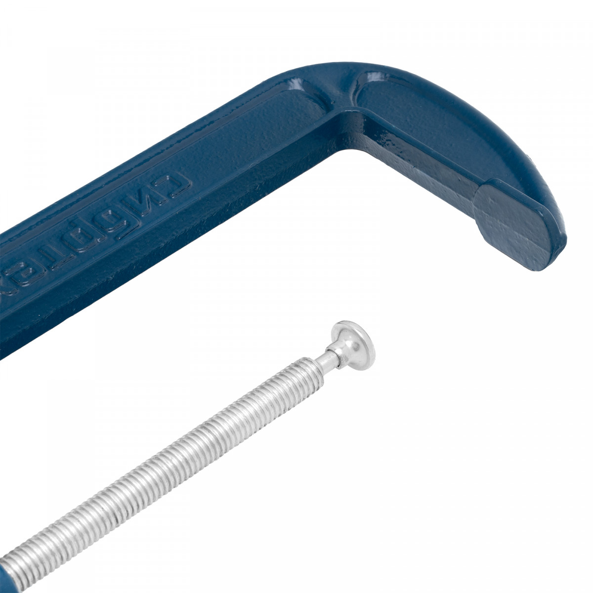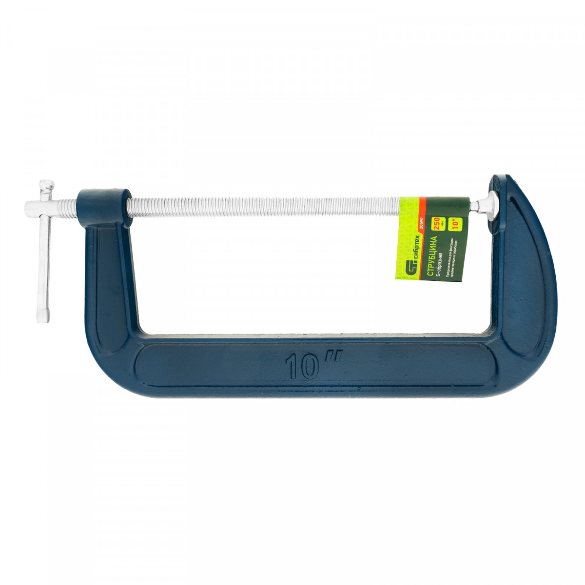 Струбцина G-образная Сибртех 20590 с шириной зажима 250 мм применяется для фиксации заготовок с целью их склеивания, а также для крепления к верстаку или станку для опиливания, сверления и другой обработки. Может использоваться во время сварки металлических деталей. Рама выполнена из чугуна с шаровидным графитом, поэтому отличается высокой прочностью и устойчивостью к нагрузкам. Струбцина пригодится в слесарной и столярной мастерской, а также будет полезна в домашнем хозяйстве.