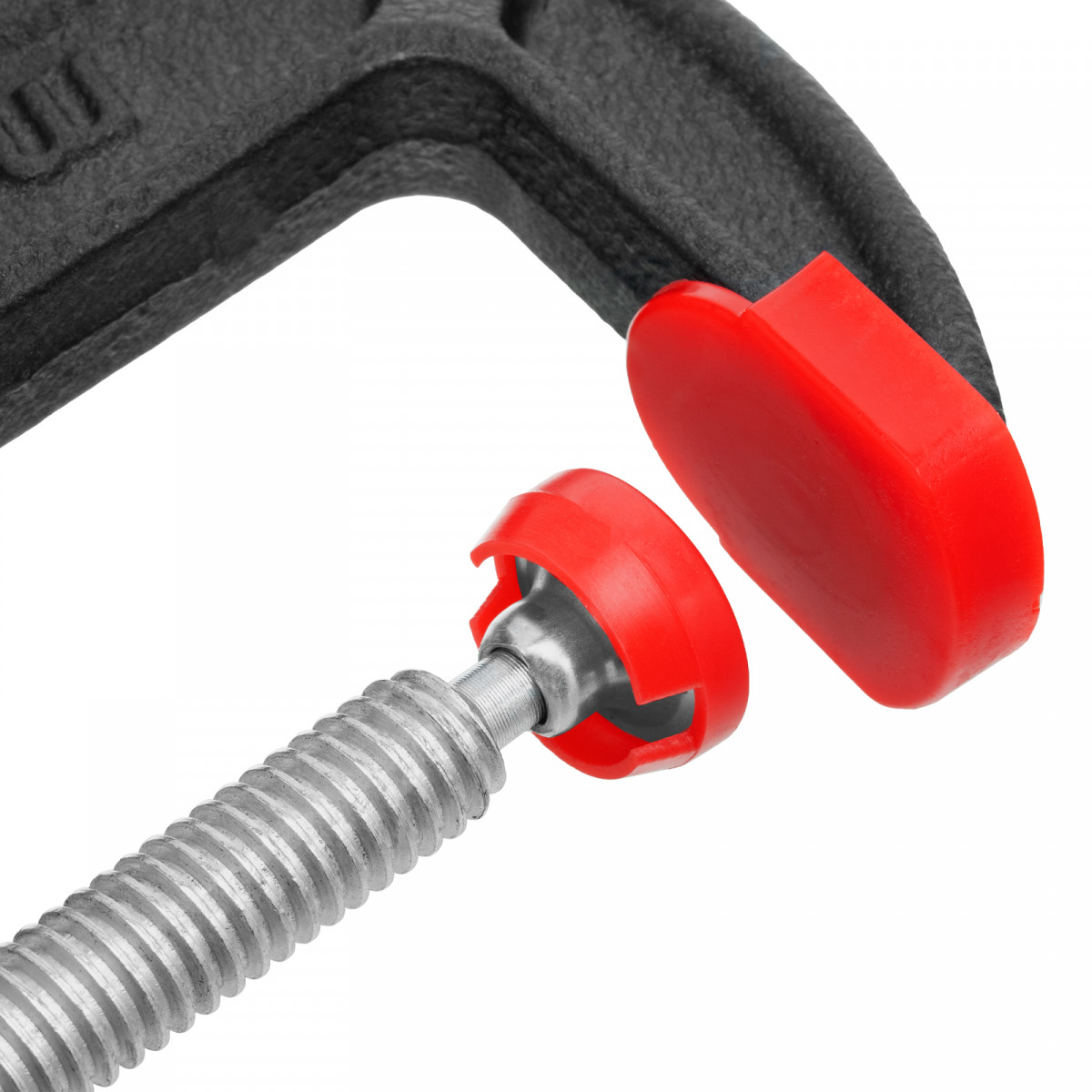 Струбцина G-образная Matrix 20603 с максимальной шириной зажима 75 мм используется для фиксации заготовок или закрепления их на верстаке или станке. Позволяет склеивать детали, а также сверлить их, шлифовать, опиливать и проводить другие работы. Подходит для использования во время сварки. Стальной винт и рама из высокопрочного чугуна выдерживают значительные нагрузки. Винт с трапециевидной резьбой обеспечивает надежную фиксацию предметов. Струбцина применяется в слесарном и столярном деле, а также в домашнем хозяйстве.