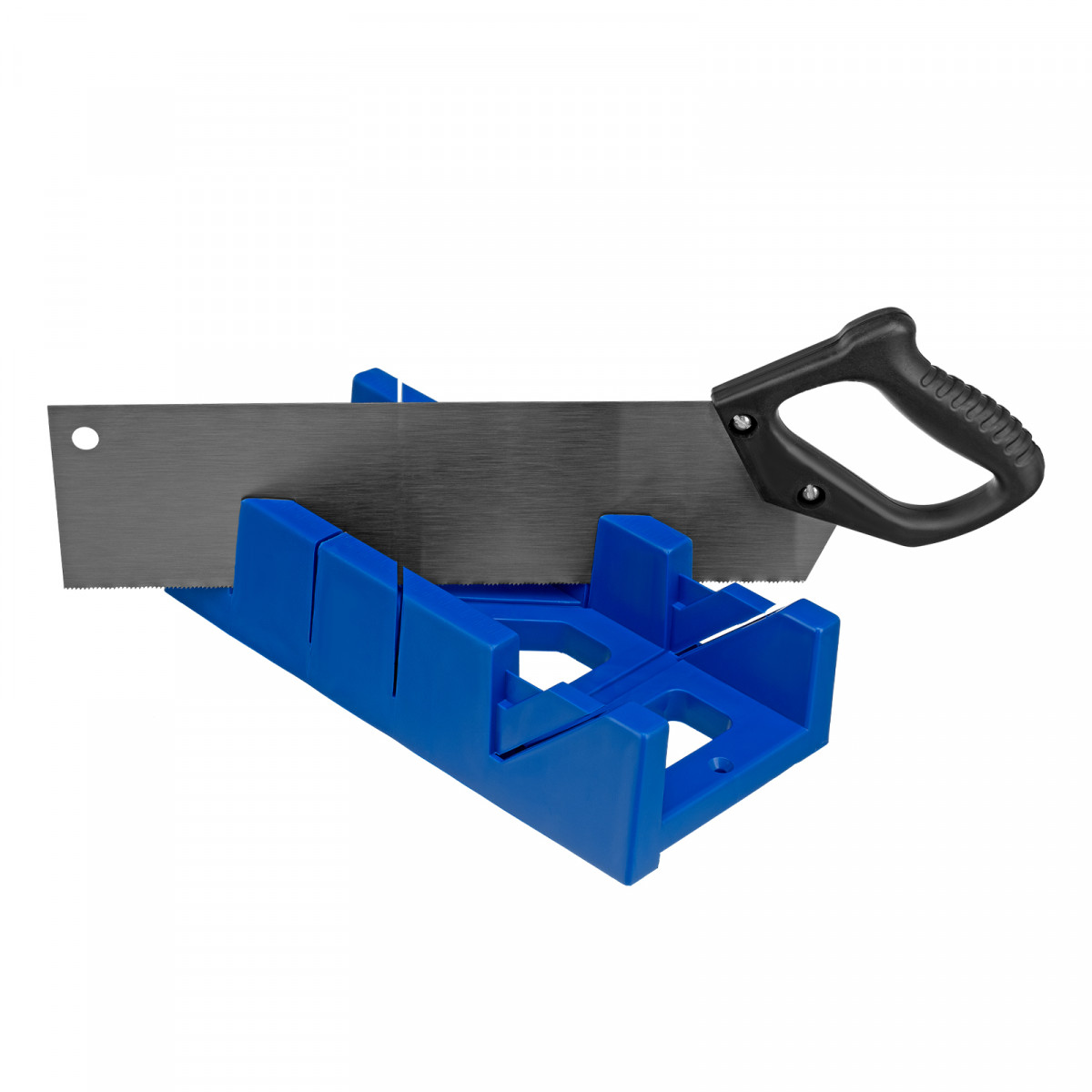 Стусло пластиковое, синее, 4 угла для запила, пила 350 мм Сибртех
