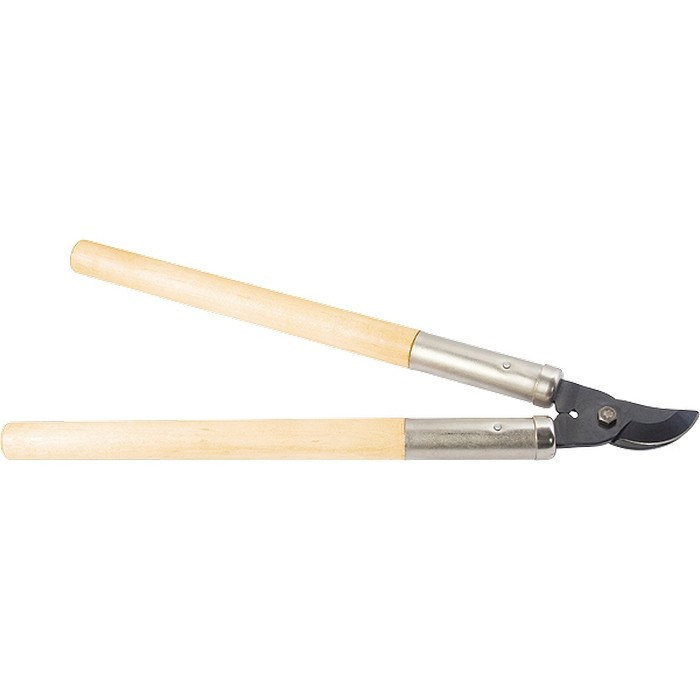 Сучкорез с прямым резом, деревянные рукоятки. Предназначен для выполнения работ по уходу за садом. Рекомендуется для дистанционной обрезки живых веток диаметром до 25 мм. Лезвия изготовлены из стали У7, остро заточены и имеют оксидированное покрытие для защиты от коррозии. Деревянные рукоятки защищены от рассыхания бесцветным лаком.