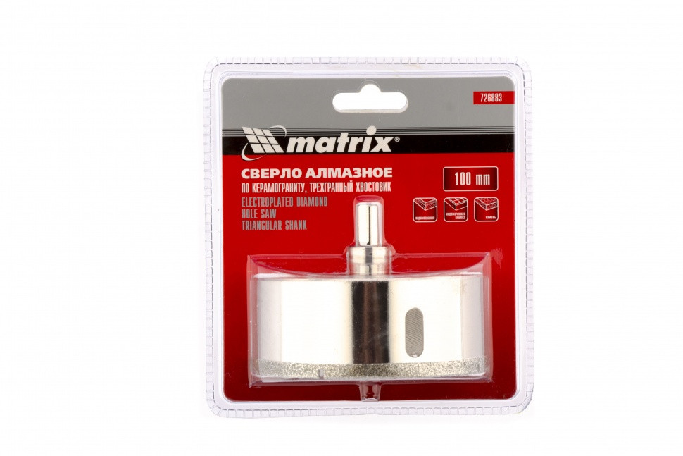 Сверло алмазное по керамограниту, 100 х 67 мм, трехгранный хвостовик Matrix