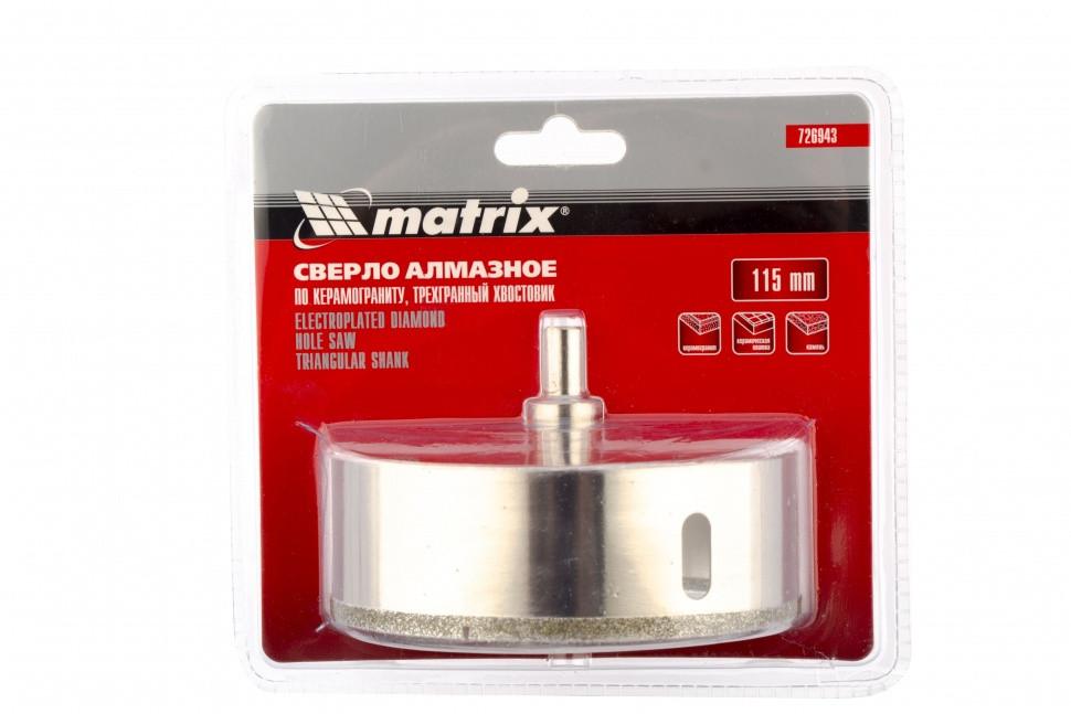 Сверло алмазное по керамограниту, 115 х 67 мм, трехгранный хвостовик Matrix