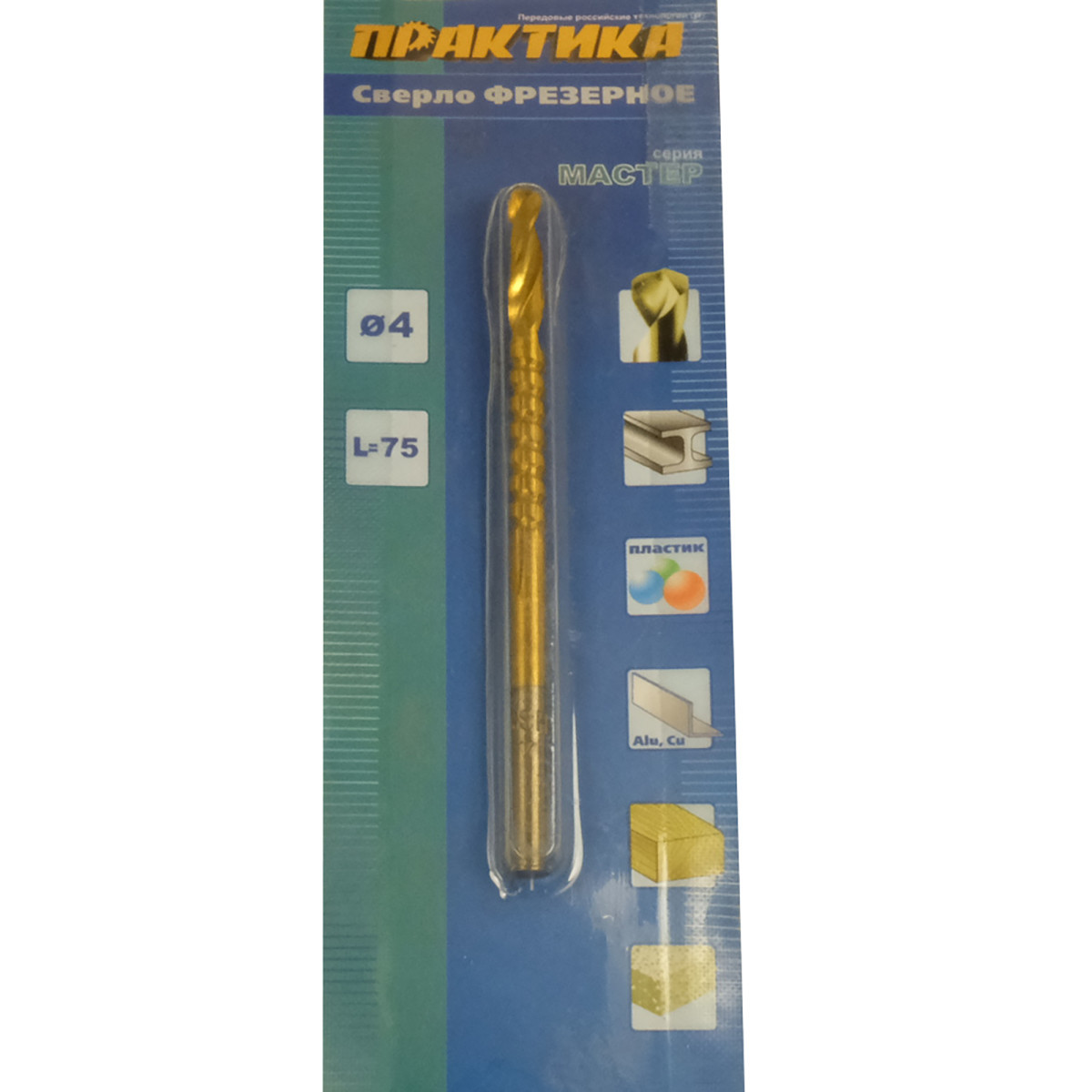 Сверло фрезерное ПРАКТИКА 4 х 75 мм блистер