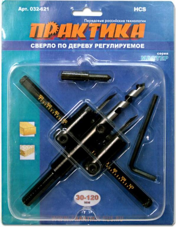 Сверло по дереву регулируемое (балеринка) ПРАКТИКА 30-120 мм
