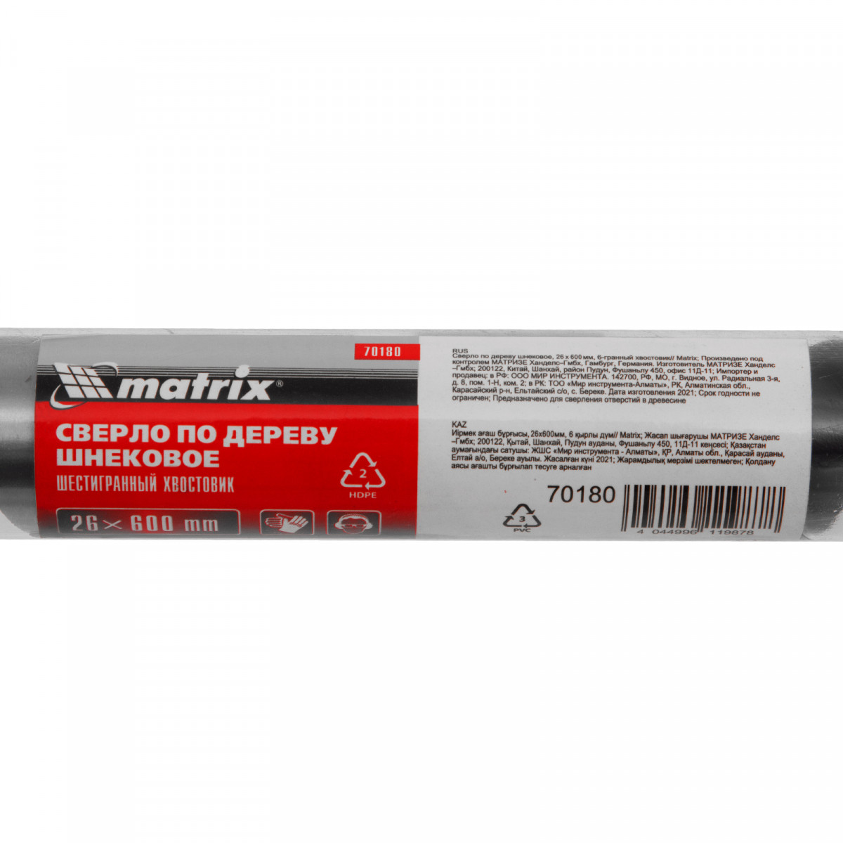 Шнековое сверло по дереву Matrix 70180 размером 26 х 600 мм, с 6-гранным хвостовиком, предназначено для получения глубоких отверстий. Подходит для работы как с мягкими, так и с твердыми породами древесины. Конструкция сверла рассчитана на интенсивное использование с высокими нагрузками в ходе строительных, ремонтных и отделочных работ.