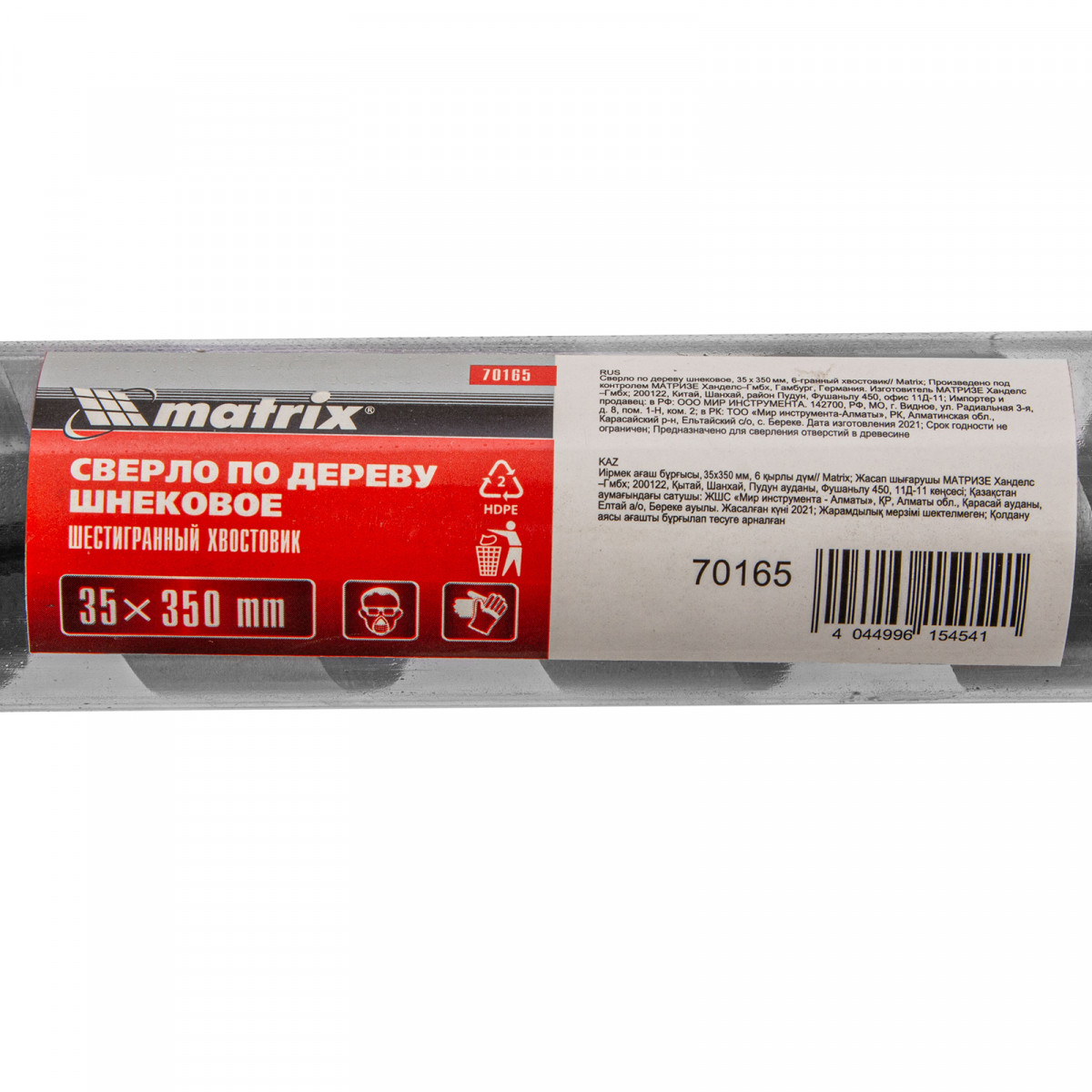Сверло по дереву шнековое, 35 х 350 мм, шестигранный хвостовик Matrix