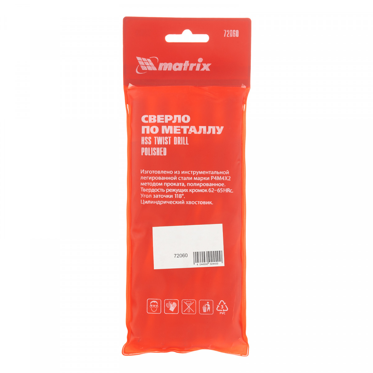 Сверло по металлу, 16 мм, полированное, HSS, 5 шт, цилиндрический хвостовик Matrix