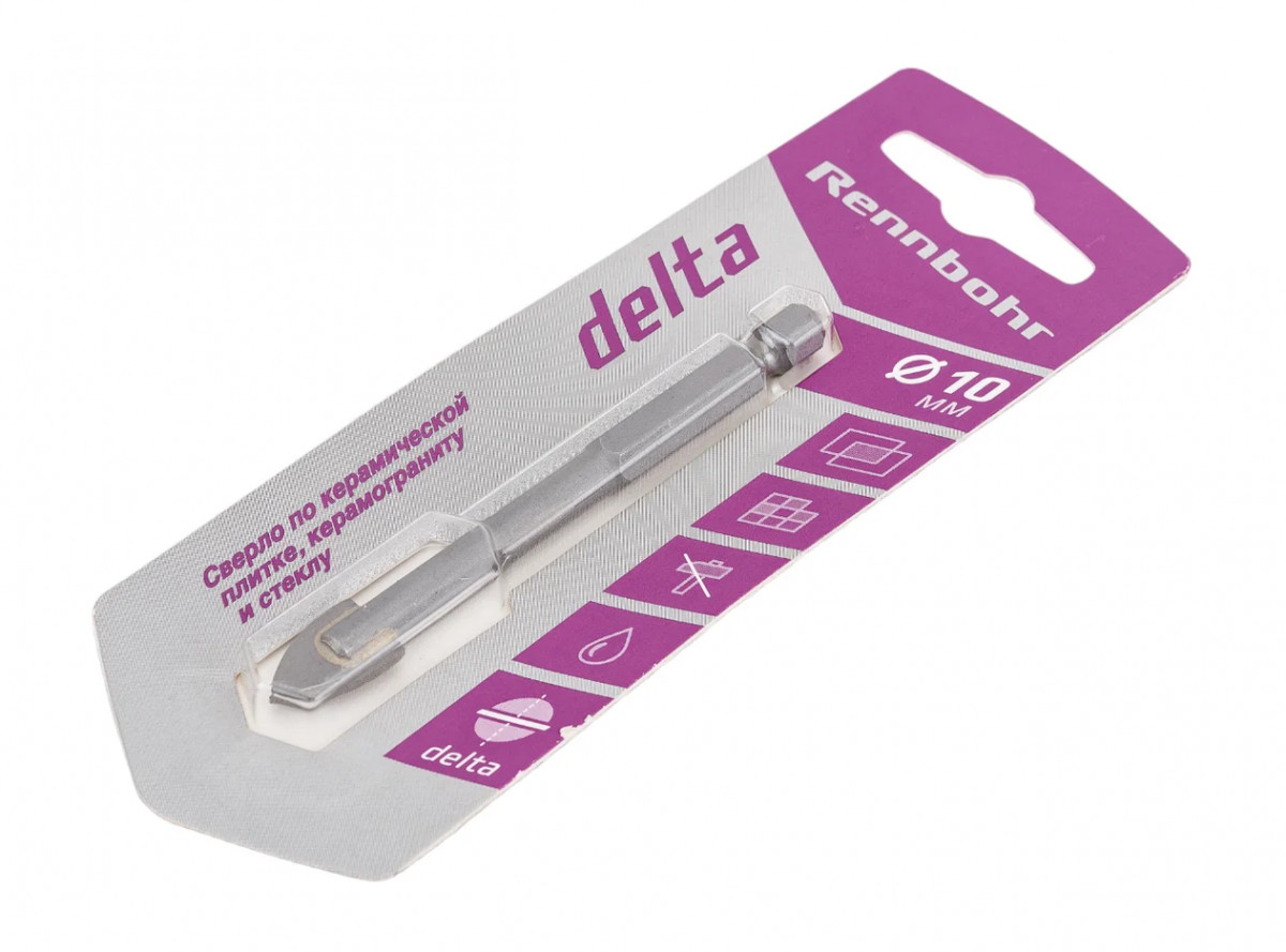 Сверло по стеклу и керамике Ø 10.0х75.0 мм ш/хв Rennbohr Delta блистер