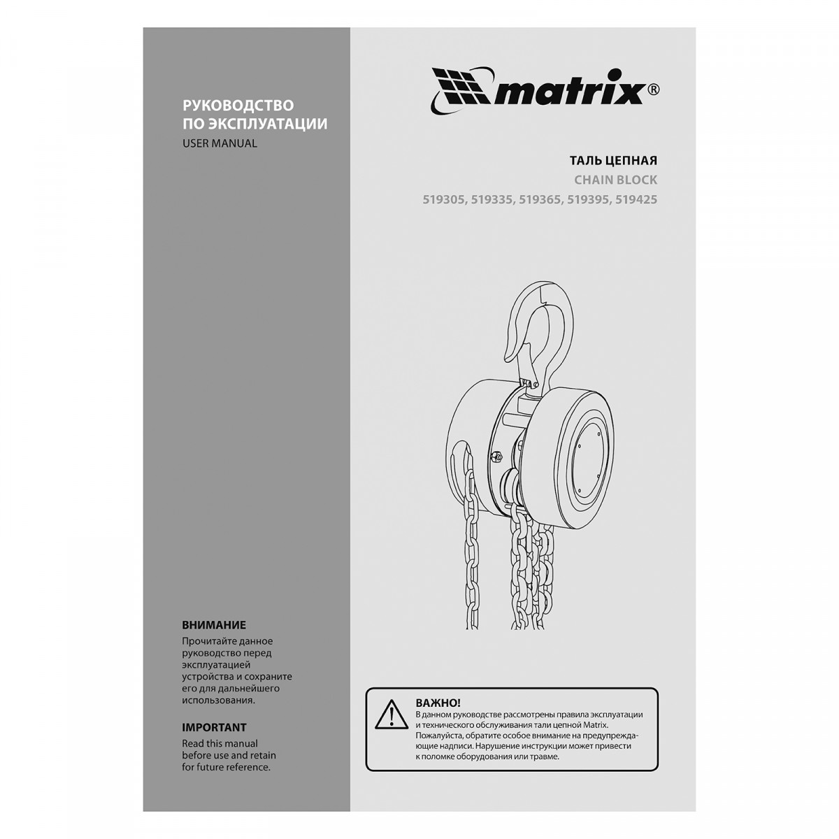 Цепная таль Matrix 519425 с расстоянием между крюками 600 мм позволяет поднимать грузы весом не более 5 т на высоту до 3 м. Простая конструкция облегчает использование. Механизм пригодится для проведения погрузочно-разгрузочных, ремонтных, монтажных работ.