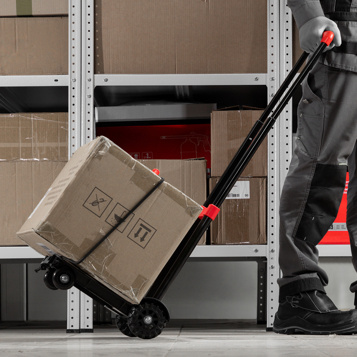 • Удобное хранение и транспортировка — благодаря складной конструкции тележка не занимает много места.