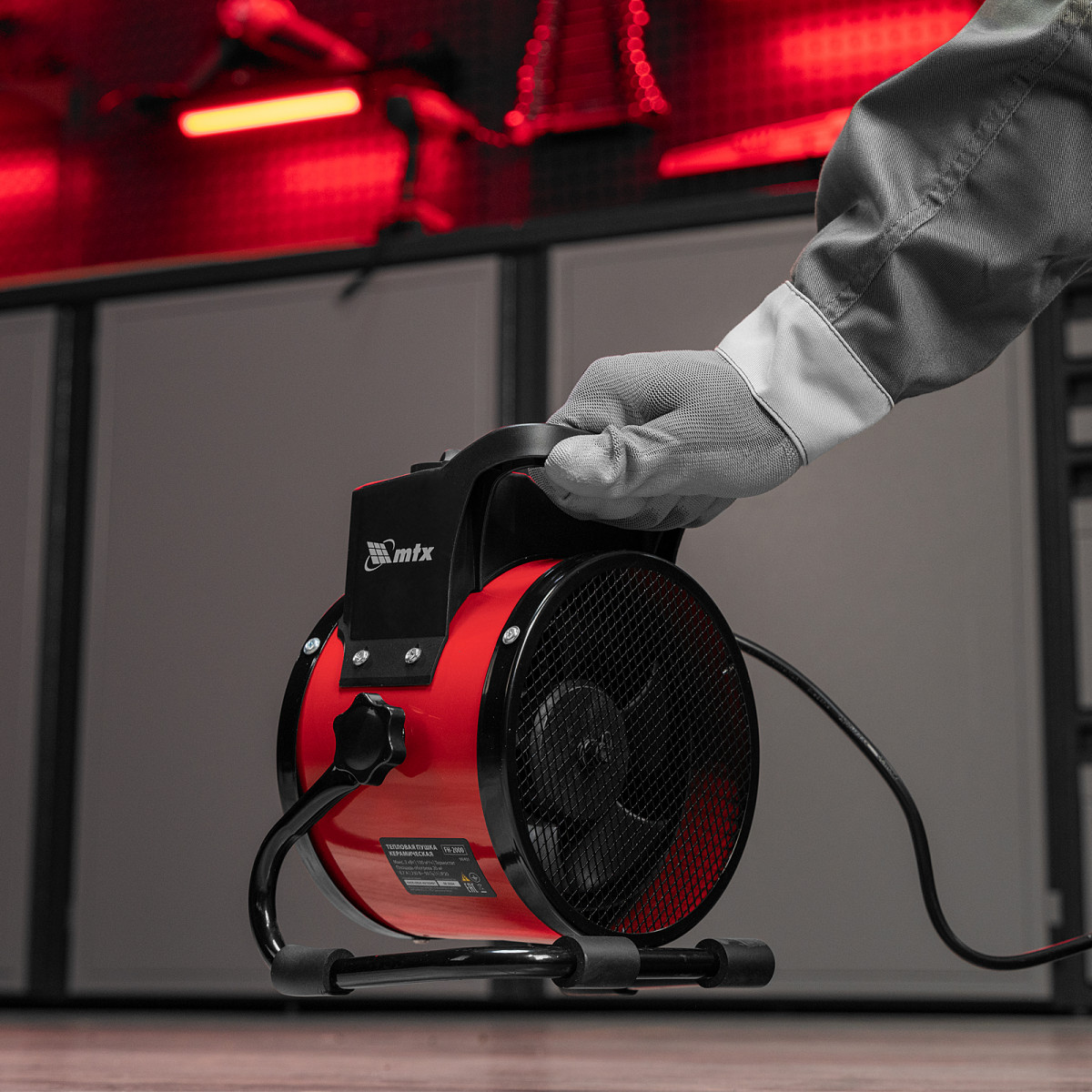 Керамическая тепловая пушка MTX FH-2000 98401 с термостатом, максимальной мощностью 2 кВт, работает в 2 режимах и предназначена для обогрева складов, мастерских и других нежилых помещений площадью до 20 м2. Также может использоваться для быстрой просушки различных поверхностей, например, стяжки пола, оштукатуренных и окрашенных стен.